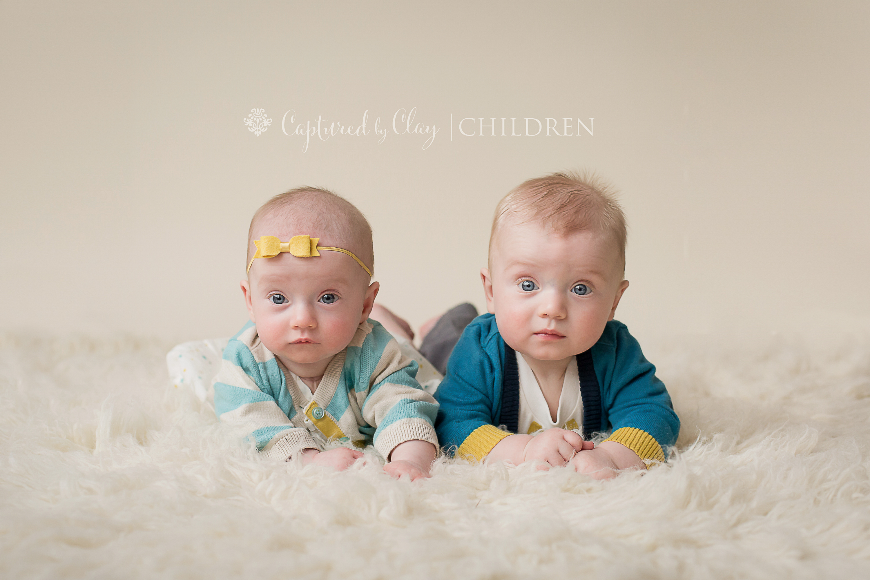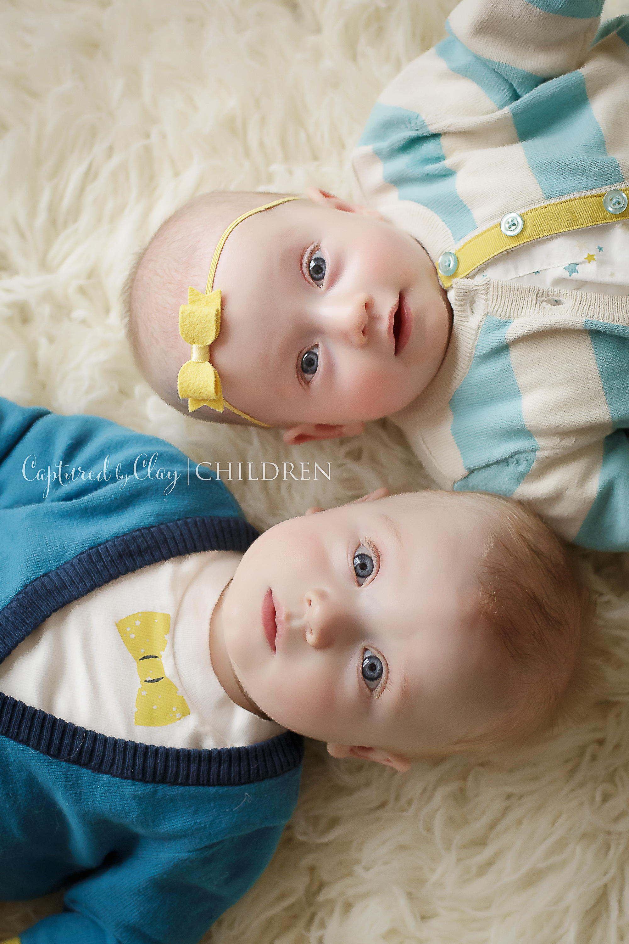 These two are the cutest ever! Those big blue eyes and sweet faces… Beautiful photographs like these showing who these twins were at this baby stage are so precious! Six months is such a great age for a photo session. Captured by Clay’s photography is beautiful!
